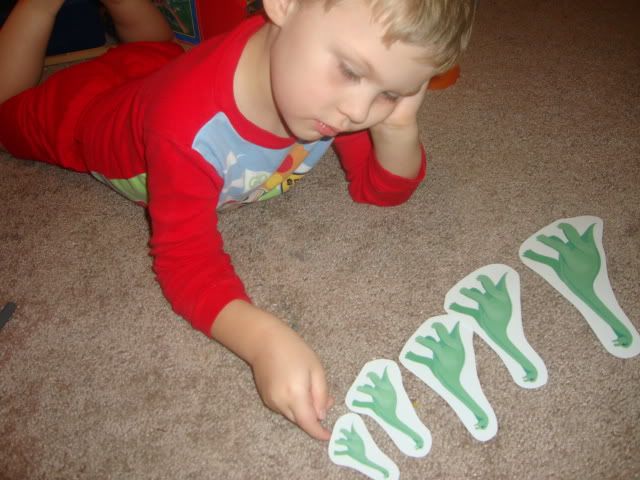 We started working on our dinosaur stuff a little bit but have since taken a break. I’ve realized that dinosaurs would be a perfect month long theme for our short term move, so we’re on hold until then!!
